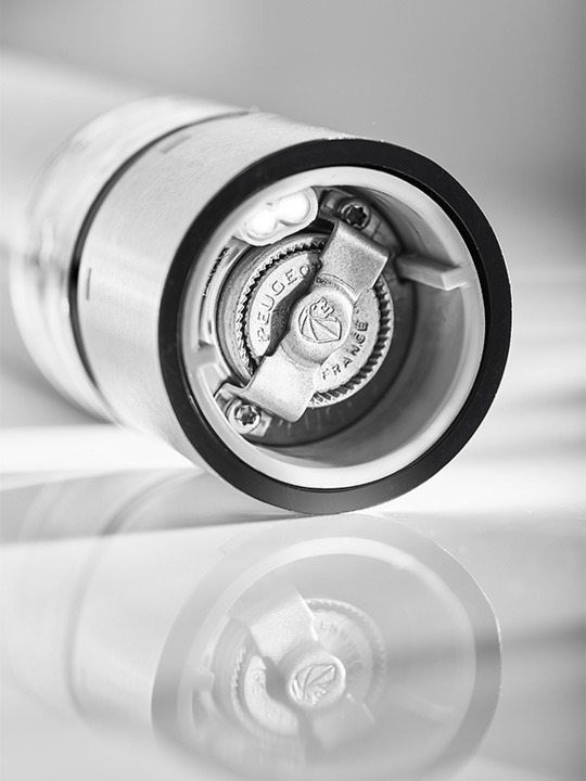 Le moulin à sel électrique Peugeot de la collection Elis Sense comblera tous les amateurs de nouvelles expériences. Son design, tout en inox avec son réservoir en acryl est résolument high-tech et contemporain. Son système a été conçu pour donner le maximum de confort et de performance à l’utilisation. Bénéficiant de la technologie tactile, le moulin Elis Sense offre une ergonomie inégalée. Il suffit de toucher simultanément le corps et la tête du moulin que son système se mette automatiquement en marche. Le moulin à sel électrique Peugeot moud le sel tout en s’éclairant grâce à sa lampe LED intégrée. Son système de réglage U select permet de sélectionner la mouture parfaite pour vos préparations culinaires. 6 tailles de moutures de sel sont proposées et plusieurs tailles intermédiaires peuvent être choisies. Le moulin à sel électrique et tactile Elis Sense est accompagné d’une fiole remplie de sel offrant une fois vide, une fonction doseur et entonnoir. Quand la technologie est au service de la gastronomie, un pur plaisir !