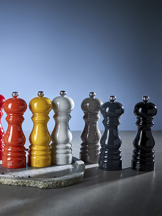 De sprankelende kleuren van de Parisrama-collectie versterken het iconische karakter van Peugeots Paris-molen. Combineer met een leisteenkleurige pepermolen voor een sobere look, of met een andere uitvoering naar keuze voor een originele combinatie. Experimenteer naar hartenlust met uitvoeringen en kleuren! De knop met S-markering verwijst niet alleen naar de inhoud van de molen, maar laat ook toe om de maalgraad van het zout aan te passen.